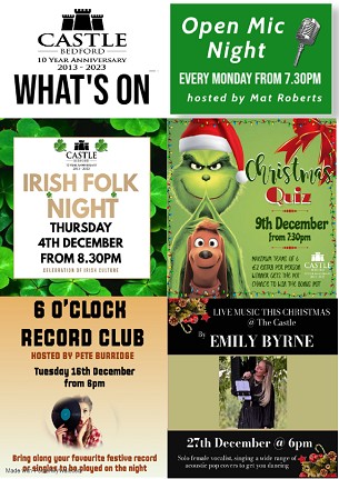 The Castle is a 19th Century traditional family run Inn which is situated in the Castle Quay part of Bedford, close to the River Ouse, Bedford's Cecil Higgins Museum and a five minute walk to Bedford Blues rugby ground, as well the High Street and shopping area.